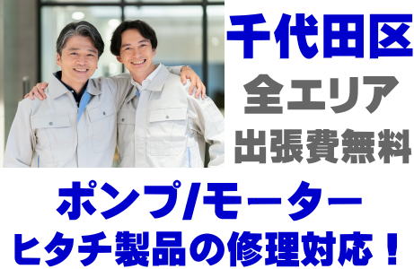 千代田区でHITACH製品(井戸ポンプ、水中ポンプ)の故障修理はヒタチ取り扱い店の当店が即日対応いたします!