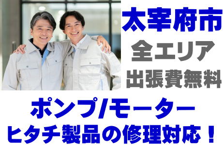太宰府市でHITACH製品(井戸ポンプ、水中ポンプ)の故障修理はヒタチ取り扱い店の当店が即日対応いたします!