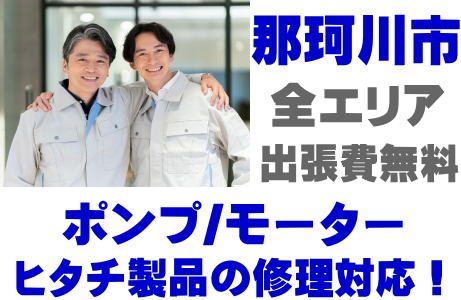 那珂川市でHITACH製品(井戸ポンプ、水中ポンプ)の故障修理はヒタチ取り扱い店の当店が即日対応いたします!