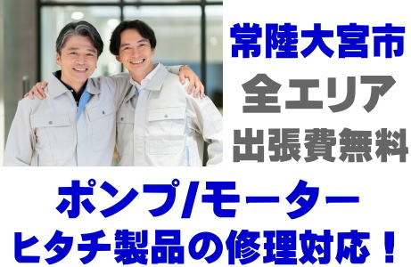 常陸大宮市でHITACH製品(井戸ポンプ、水中ポンプ)の故障修理はヒタチ取り扱い店の当店が即日対応いたします!