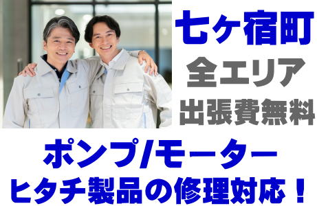 七ヶ宿町でHITACH製品(井戸ポンプ、水中ポンプ)の故障修理はヒタチ取り扱い店の当店が即日対応いたします!