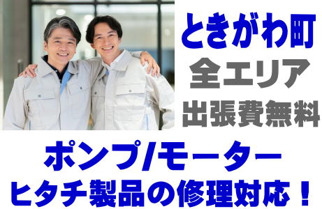 ときがわ町でHITACH製品(井戸ポンプ、水中ポンプ)の故障修理はヒタチ取り扱い店の当店が即日対応いたします!