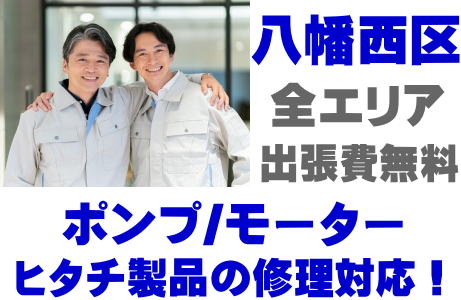 八幡西区でHITACH製品(井戸ポンプ、水中ポンプ)の故障修理はヒタチ取り扱い店の当店が即日対応いたします!