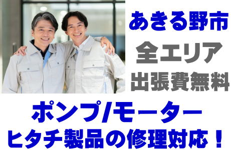 あきる野市でHITACH製品(井戸ポンプ、水中ポンプ)の故障修理はヒタチ取り扱い店の当店が即日対応いたします!