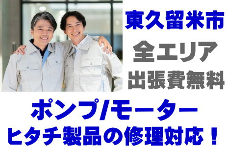 東久留米市でHITACH製品(井戸ポンプ、水中ポンプ)の故障修理はヒタチ取り扱い店の当店が即日対応いたします!