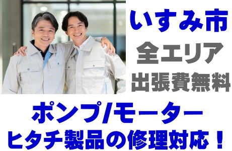いすみ市でHITACH製品(井戸ポンプ、水中ポンプ)の故障修理はヒタチ取り扱い店の当店が即日対応いたします!