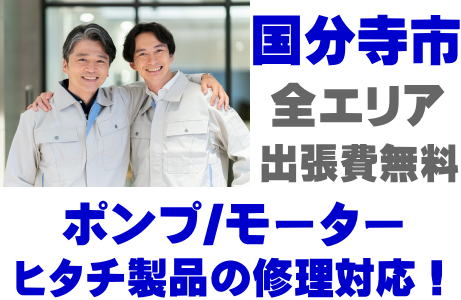 国分寺市でHITACH製品(井戸ポンプ、水中ポンプ)の故障修理はヒタチ取り扱い店の当店が即日対応いたします!