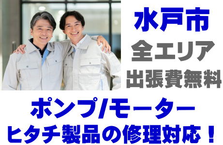 水戸市でHITACH製品(井戸ポンプ、水中ポンプ)の故障修理はヒタチ取り扱い店の当店が即日対応いたします!