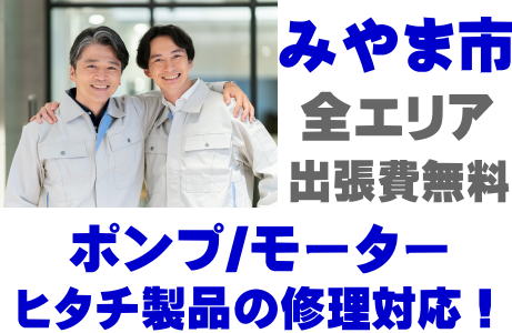 みやま市でHITACH製品(井戸ポンプ、水中ポンプ)の故障修理はヒタチ取り扱い店の当店が即日対応いたします!