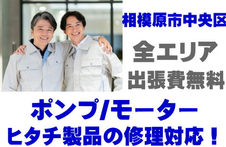 相模原市中央区でHITACH製品(井戸ポンプ、水中ポンプ)の故障修理はヒタチ取り扱い店の当店が即日対応いたします!