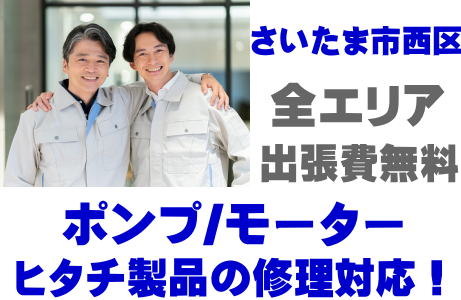 さいたま市西区でHITACH製品(井戸ポンプ、水中ポンプ)の故障修理はヒタチ取り扱い店の当店が即日対応いたします!