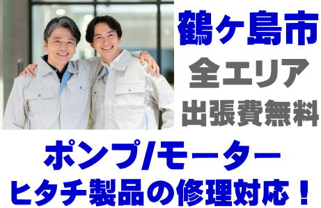 鶴ヶ島市でHITACH製品(井戸ポンプ、水中ポンプ)の故障修理はヒタチ取り扱い店の当店が即日対応いたします!